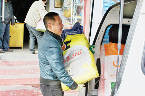 2月13日,原平市宇峰種業(yè)工作人員正在為種子銷售點運送各種優(yōu)良種子。目前該市農(nóng)資部門已經(jīng)為農(nóng)民們準(zhǔn)備好了各種化肥、種子、農(nóng)機具等,為今年春耕備耕做好了準(zhǔn)備。(趙春曉 攝)