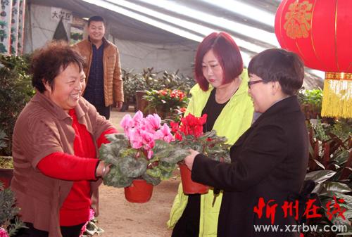 2月15日,原平市花卉園區福地花卉大棚里春意濃濃,市民們正在挑選鮮花,隨著傳統觀念的改變,如今拜年走親訪友送鮮花也成為新時尚,同時也增加了農民收入。(趙月仁 攝)
