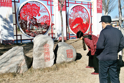 2月16日,原平市民正在觀賞范亭文體景觀文化墻。該市著力打造文化強市,利用城鄉墻體繪制人文地理、名勝景觀、歷史古跡等,傳播文化正能量,營造濃厚的文化氛圍,這也成為城鄉一道靚麗風景。(褚震 攝)