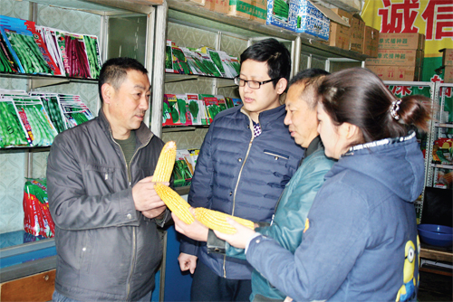 2月13日,原平市宇峰種業的農技人員正在為前來購買種子的人們講解各種種子對土壤的適應性和如何提高種植產量。目前該市農民們已經開始購買化肥、種子、農機具等,為今年春耕做準備。(趙春曉 攝)