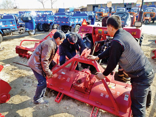 七九河開,八九燕來。春耕生產開始之際,農民們開始為春耕做準備。圖為原平市大陽村村民王師傅正在購買農機。(李玉生 攝)