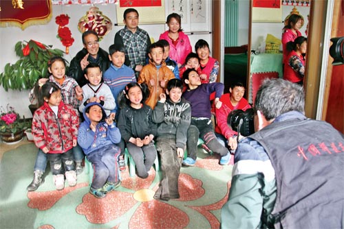 近日,原平市文明辦、市文聯組織攝影愛好者下基層開展“迎春送祝?!被顒?,對全市模范、身邊好人進行了走訪慰問,并為他們拍攝了全家福照片。圖為攝影愛好者為2014年中國好人、山西省第四屆道德模范陳天文、郭改然夫婦免費拍攝全家福照片。(褚震 攝)