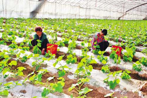 3月9日,在總投資1.2億元的原平市雙惠現代農業科技示范園區的蔬菜大棚里,員工們正在對“香妃”、“芝麻蜜”香瓜進行管理。在“冬季行動”中,該園區真抓實干,到處是一派繁忙景象,目前一棟棟大棚里各種蔬菜、瓜果長勢喜人。(趙春曉 攝)