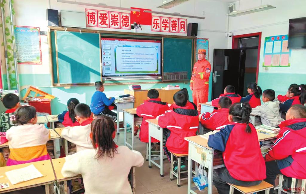 活動中,指戰員通過通俗易懂的語言、生動有趣的圖片、森林防火宣傳視頻等,為同學們深入淺出地講解了森林火災的成因、危害、預防措施以及緊急避險逃生方法等。(本報通訊員攝)