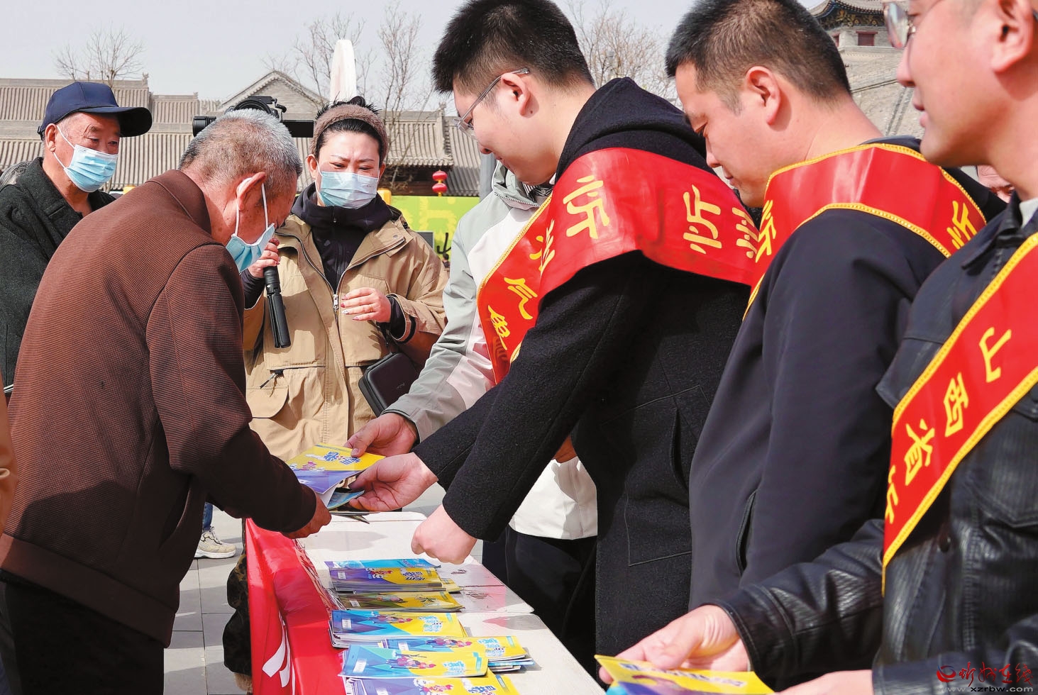 圖為工作人員向過往群眾發(fā)放宣傳資料。