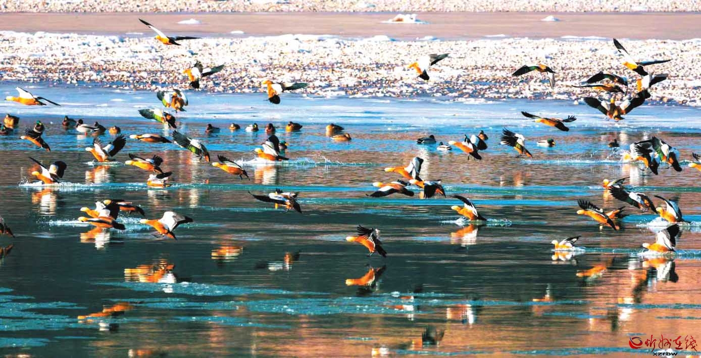 天鵝和野鴨棲息在黃河沿線 王春梅 攝