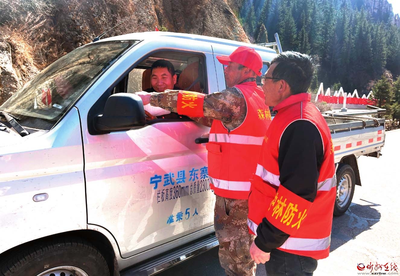 “進山請掃碼登記,先把火種暫存在我這兒!”在寧武縣涔山鄉支鍋石防火檢查卡點,生態護林員正在對過往車輛及行人進行嚴格登記,從嚴管控火源入山,把好護林防火“第一關”。 (吳光宇 劉 強攝)