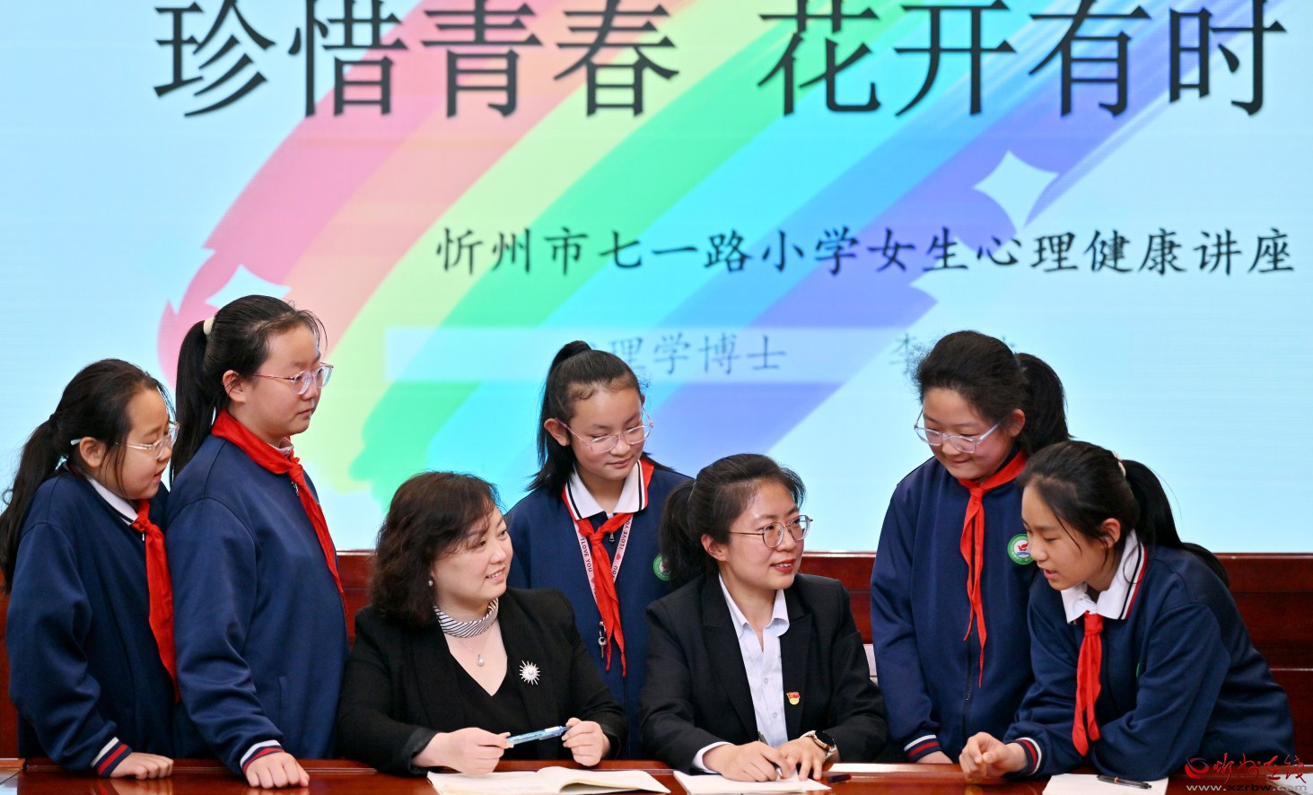 4月18日,忻州市七一路小學(xué)特邀忻州師范學(xué)院李泳波博士走進(jìn)校園,為四、五年級(jí)女學(xué)生開展了一場(chǎng)生動(dòng)有趣的生理健康知識(shí)講座。講座中,李博士通過圖文并茂的PPT和趣味動(dòng)畫,用通俗易懂的語言講解了青春期身體發(fā)育特點(diǎn)、個(gè)人衛(wèi)生護(hù)理等知識(shí),并針對(duì)學(xué)生常見的困惑進(jìn)行了互動(dòng)答疑,引導(dǎo)學(xué)生樹立正確的健康觀念,學(xué)會(huì)自我保護(hù)。(記者 馮曉磊攝)