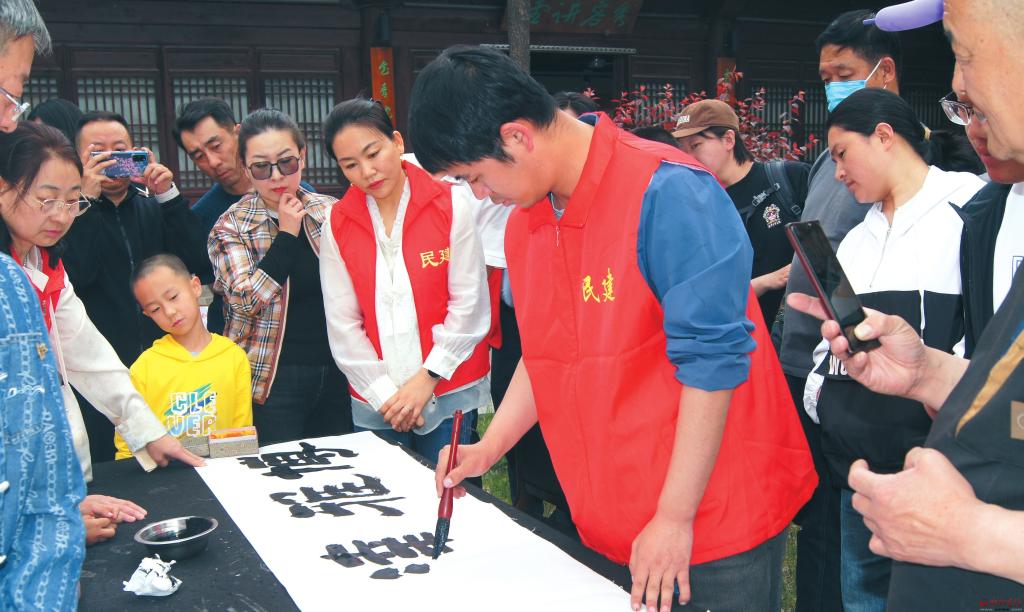 5月4日,民建忻州市委在忻州古城秀容書院舉辦紀念中共中央“五一口號”發布77周年系列活動,通過“會史教育”“文化惠民”“健康運動”三大主題,帶領會員重溫歷史、繼承傳統,矢志不渝跟黨走、攜手奮進新時代。中書協會員陳衛新等知名書法家現場揮毫潑墨,現場創作書法作品贈予群眾,以筆墨傳遞家國情懷,吸引市民駐足參與,現場氣氛熱烈。(傅晨起攝)