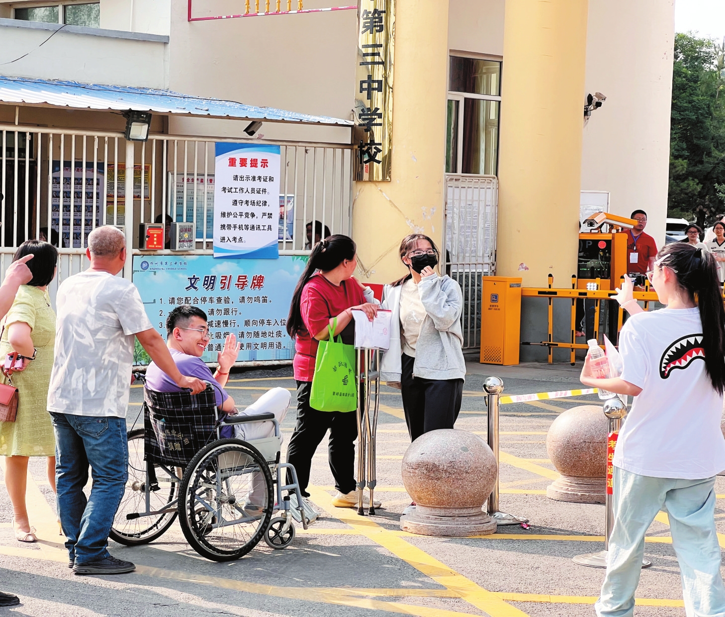 圖為忻州二中考點(diǎn),家長(zhǎng)為考生送上美好祝福。趙菁攝