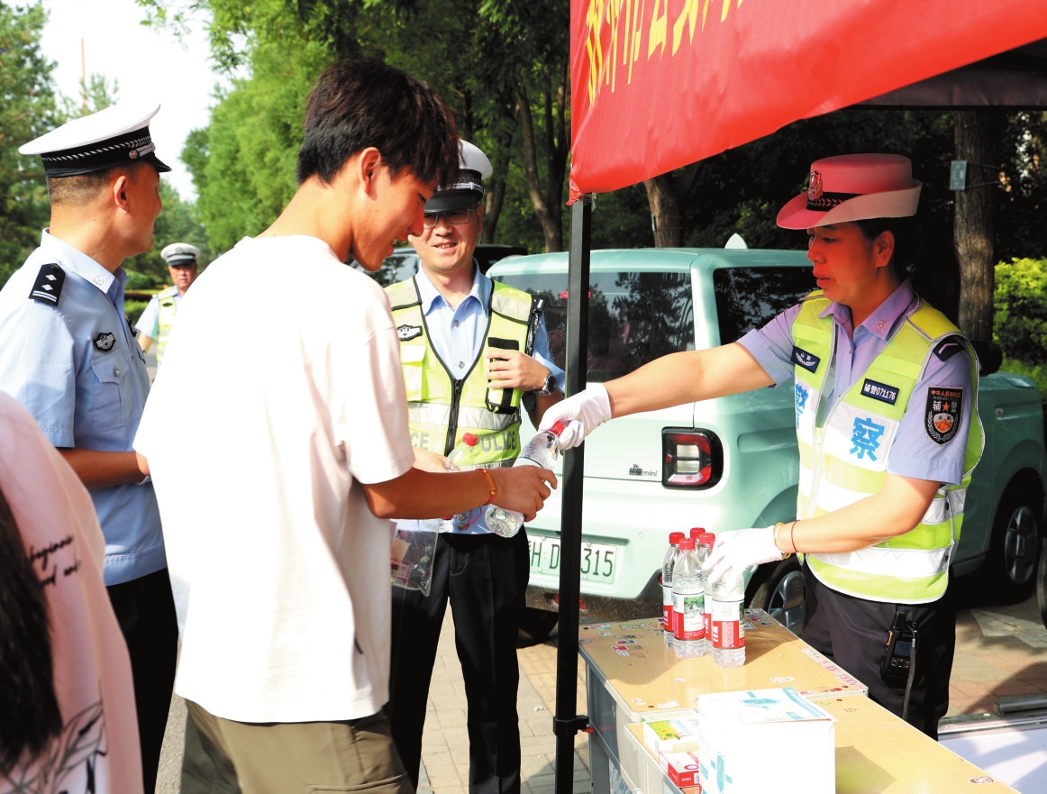 圖為忻州高級(jí)中學(xué)考點(diǎn),交警為考生提供貼心服務(wù)。陳勇升攝