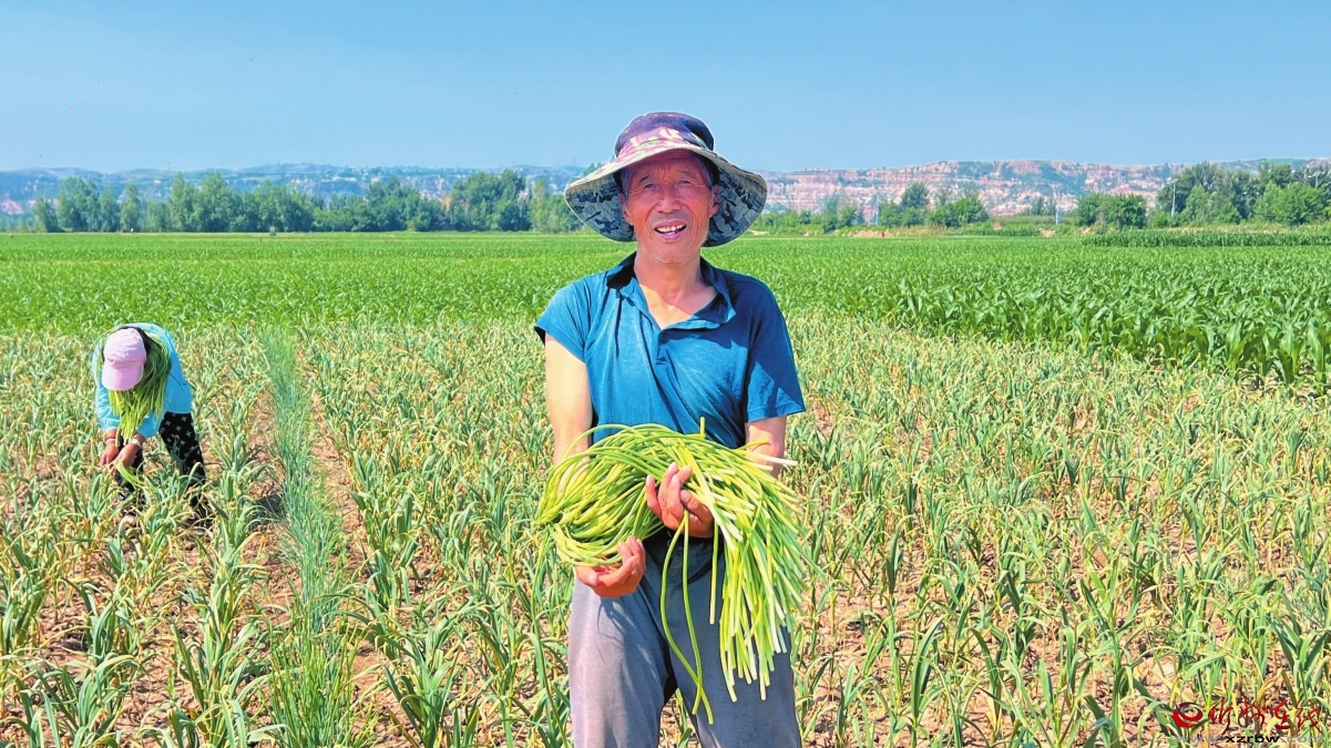 “大蒜渾身都是寶”,其種植具有生長周期短、見效快、經濟價值高的特點。小小的蒜薹既是餐桌上的美味,也是蒜農的“提款機”,而即將成熟的蒜頭更是增收的“重頭戲”。蒜薹和蒜頭“雙收獲”模式,成為了村民增收致富“金鑰匙”。種植戶李朝陽滿臉喜悅地說:“今年村里大力鼓勵種蒜,我就多種了點,種了一畝多。這幾天賣蒜薹掙了點錢,心里踏實又開心!”