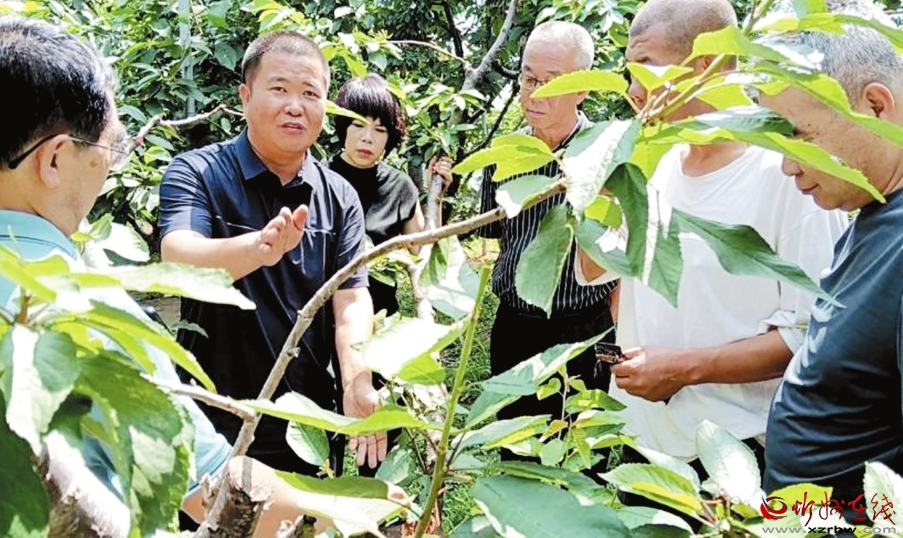 近日,原平市農業農村局特邀山西農大果樹研究所張生智教授深入田間地頭,針對困擾果農多年的技術難題現場“把脈開方”,為果農提供精準技術指導。(劉美玲攝)