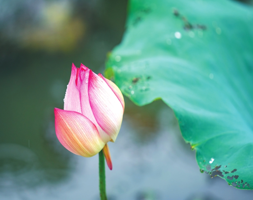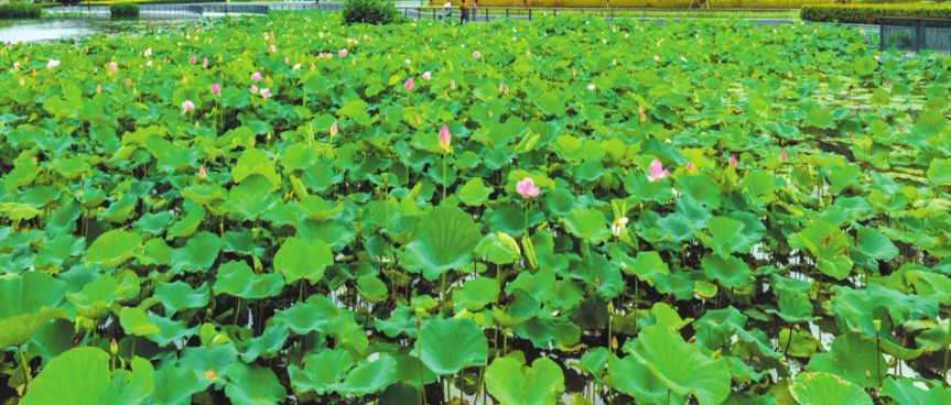 晨霧未散時,“綠云”先漫過了河岸——層層疊疊的荷葉浮在水面,像被風吹過的綢緞,葉尖凝著的荷露,是天空落進人間的碎鉆。粉白的荷從“綠云”里探出頭,半開的像未寫完的詩箋,盛放的似被陽光吻過的笑靨,連風掠過時都輕了三分,怕驚碎這池溫柔。