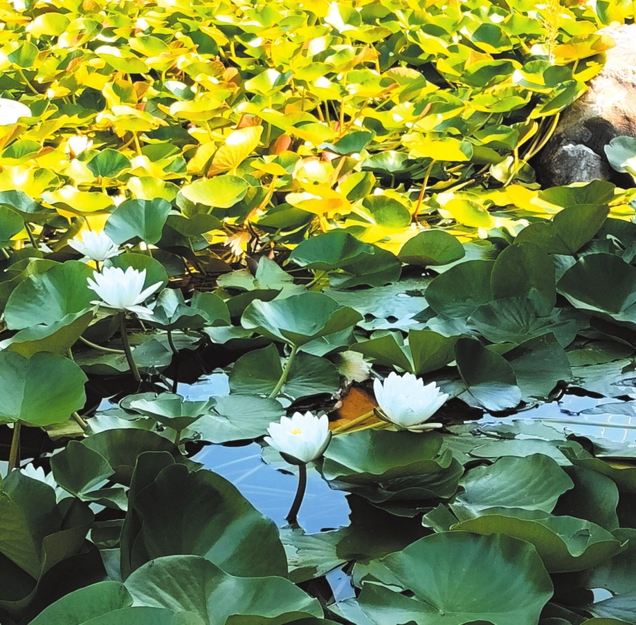 日頭爬高些,荷香便成了游走的信差。它鉆進小橋的縫隙,沾了點煙火氣;繞著岸邊的樹枝打旋兒,裹了絲蟬鳴;最后停在賞荷人的面前,令人心醉。