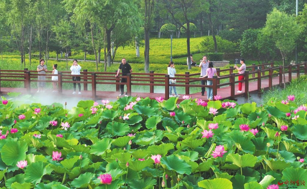 近日,云中河景區的荷花競相綻放,吸引眾多游客前往賞荷花、聞荷香。(