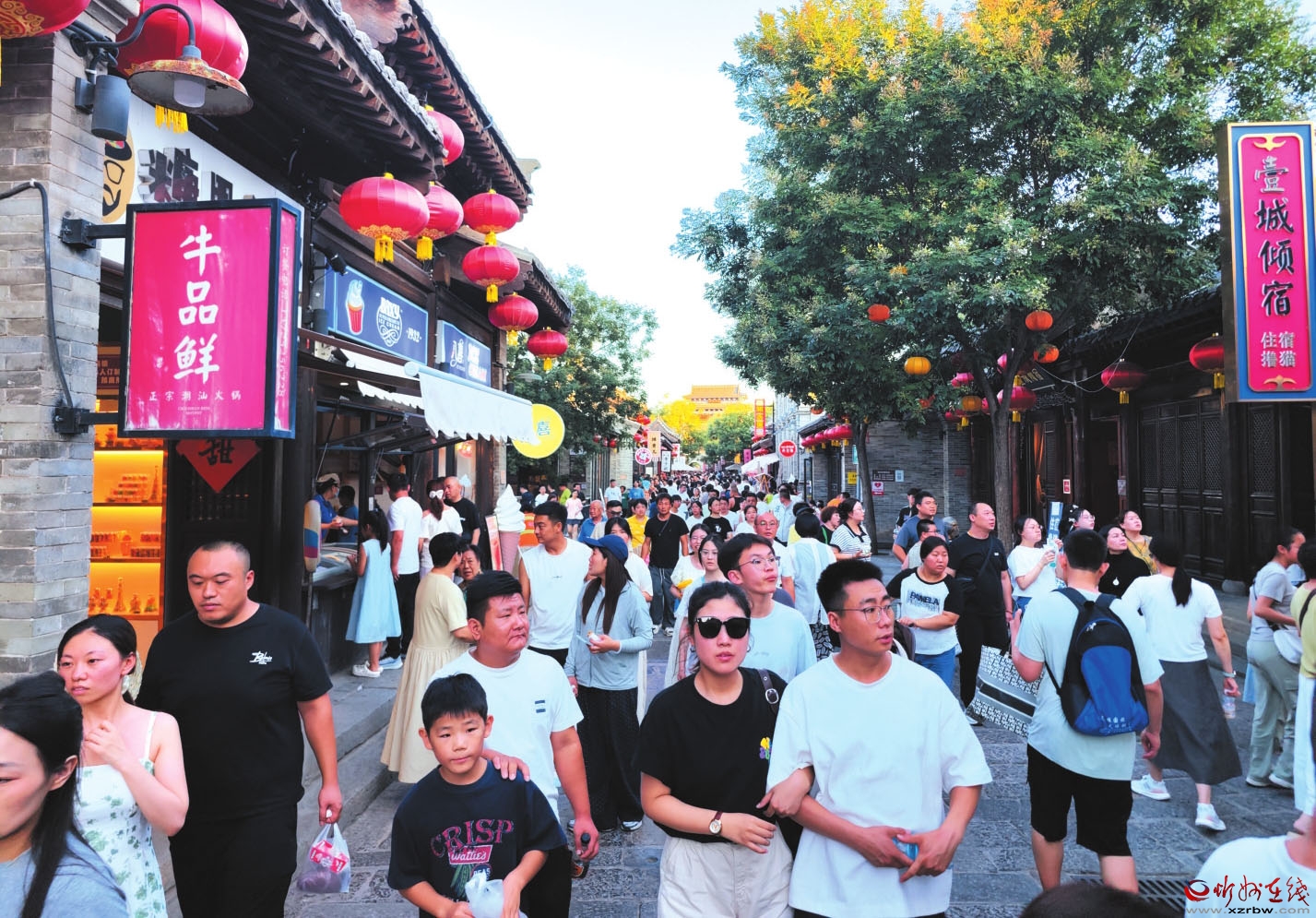 眼下正值暑期旅游旺季,文旅市場消費旺盛。圖為游客在忻州古城景區游玩。 (