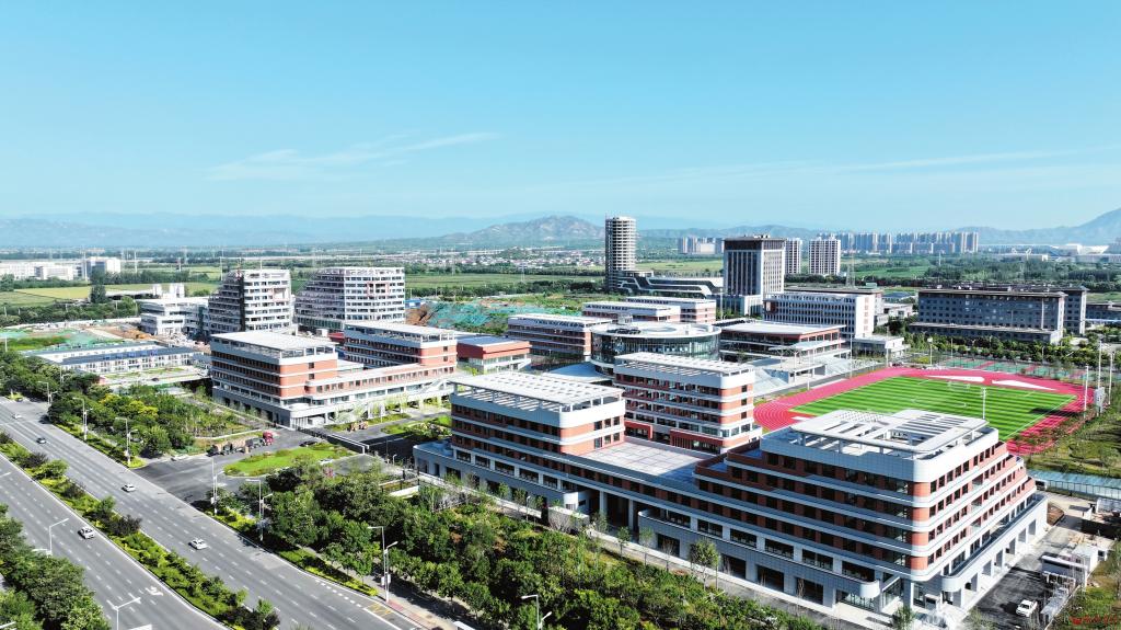 經過一年的緊張建設,忻州現代康養職業學院完成施工,進入竣工公示階段。圖為無人機拍攝的忻州現代康養職業學院全景。(