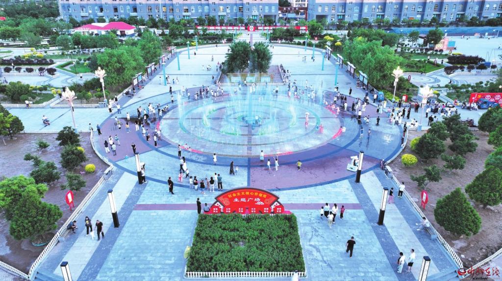 近年來,寧武縣不斷加大基礎設施建設力度,讓市民在城市發展中獲得更多幸福感。圖為市民在人民廣場欣賞音樂噴泉。(