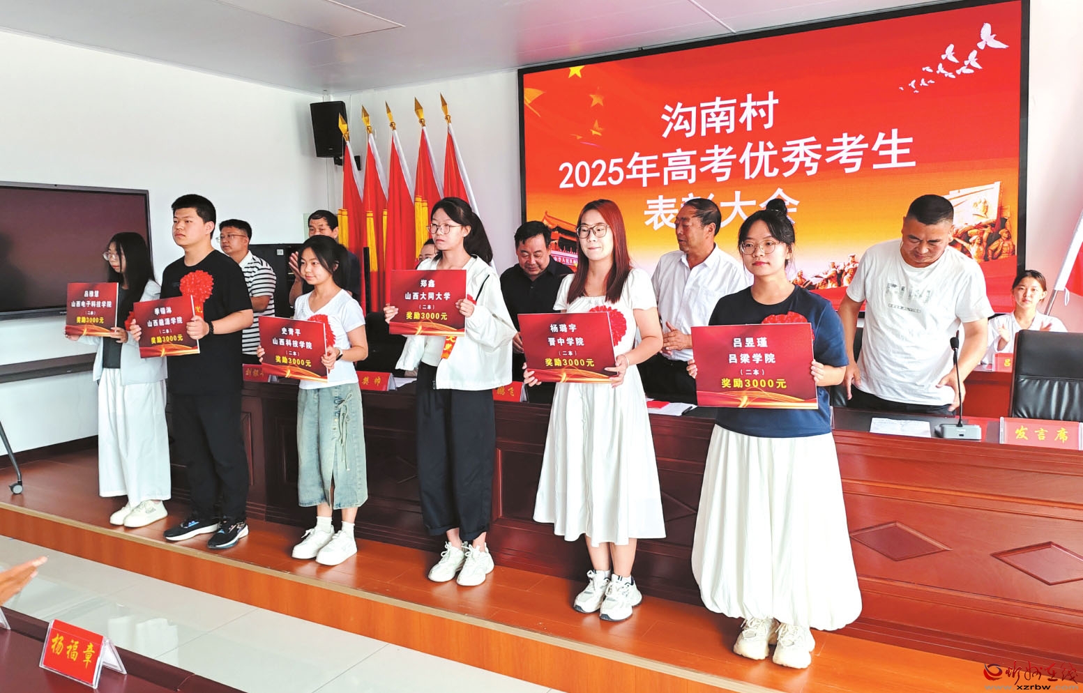 8月26日,五臺縣溝南鄉溝南村舉行2025年度高考優秀學生表彰獎勵大會,對本村高考成績優異的學生予以表彰。作為省、市、縣三級文明村,溝南村歷來有尊師重教的優良傳統,近年來更是將鼓勵學生成才作為鄉村振興的重要抓手,每年定期對高考中取得優秀成績的本村學生進行表彰。截至目前,該村累計發放獎金超10萬元。(高峰毅攝)