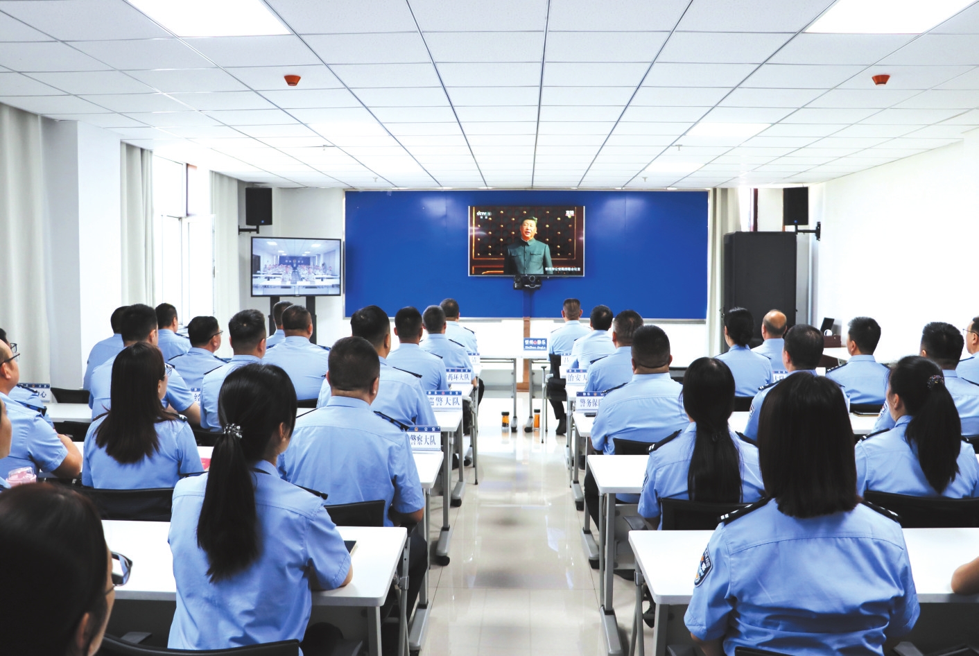 靜樂縣公安局干警觀看紀念大會。喬秀乾攝