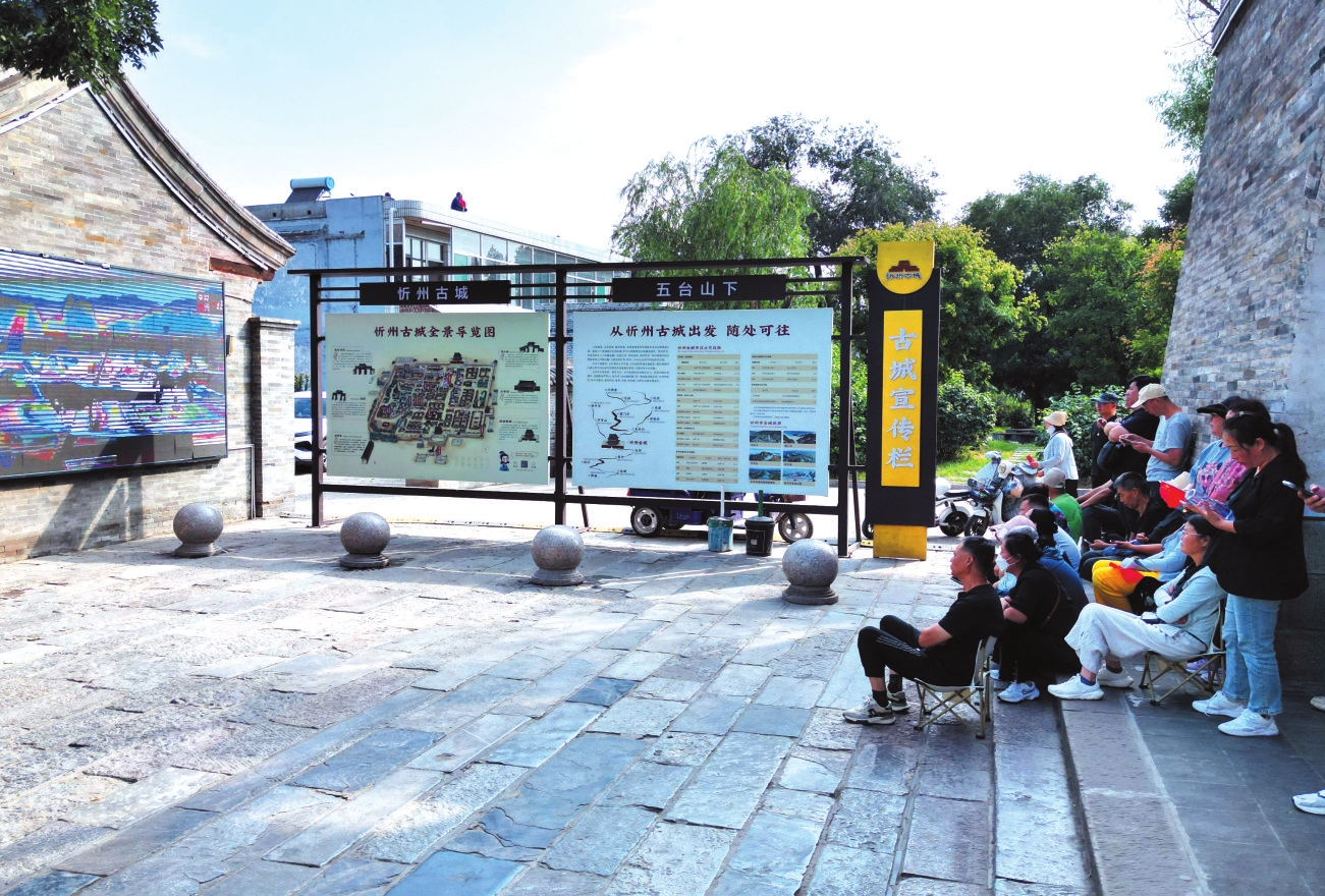 忻州古城,游客駐足觀看紀念大會。申健攝