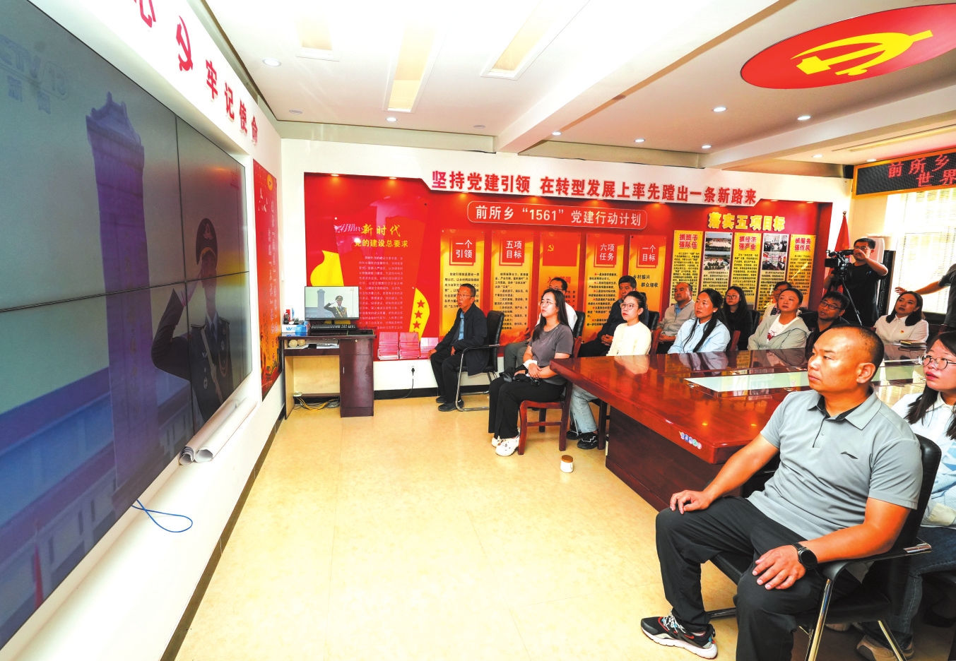 五寨縣前所鄉黨員干部觀看紀念大會。劉篤效攝