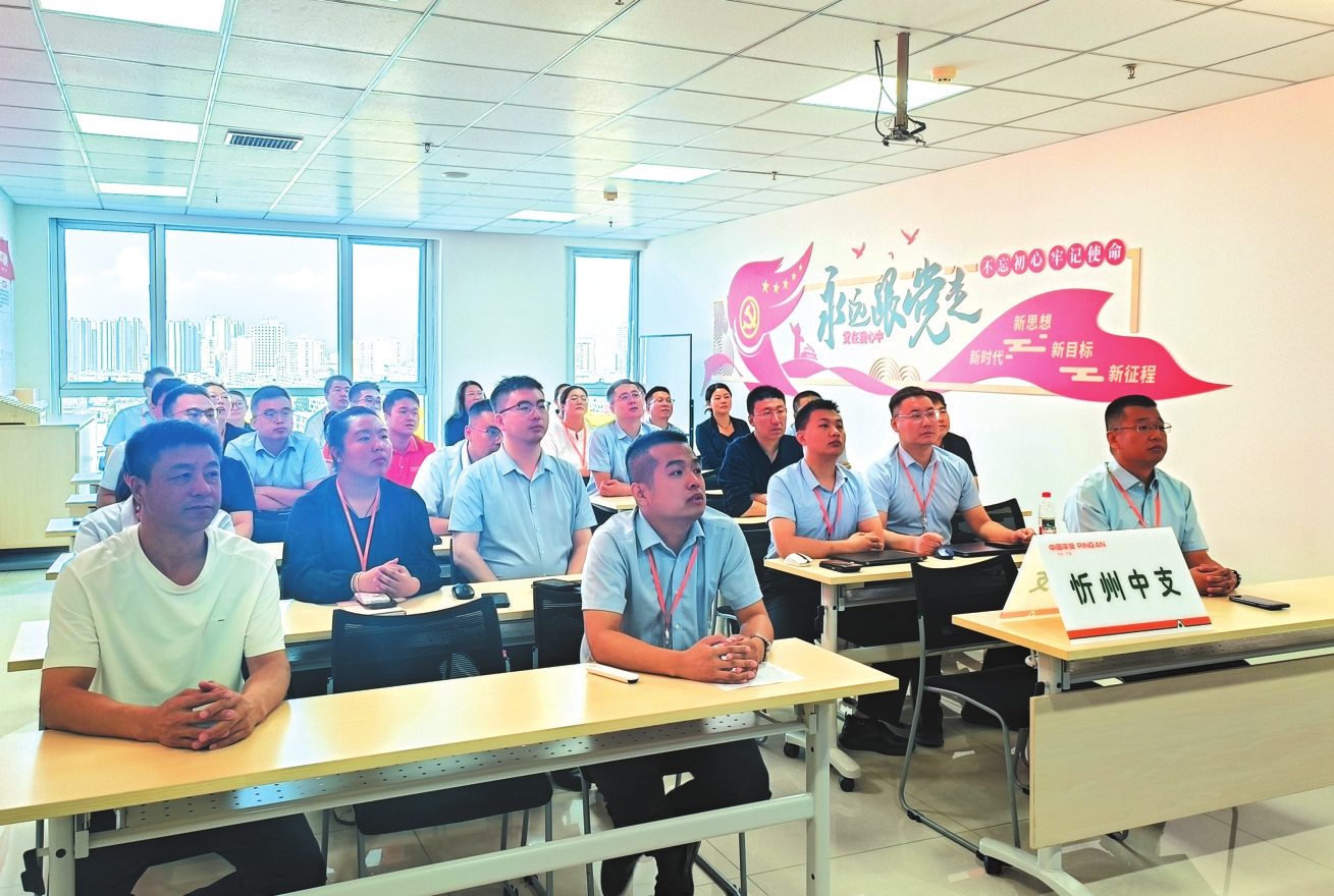 平安財險忻州分公司員工觀看紀念大會。孫湖英攝