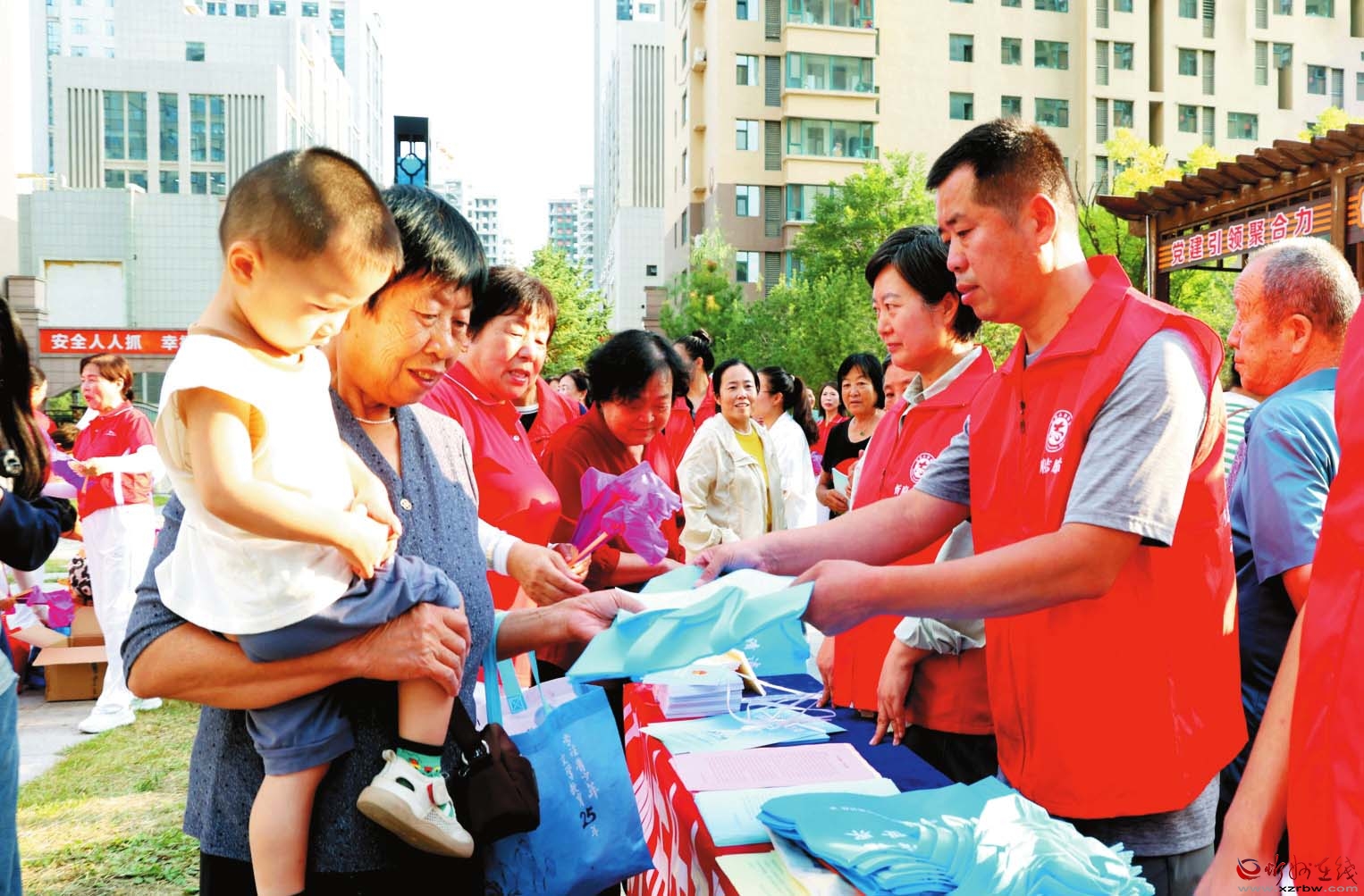 9月12日,由省生態環境廳、省婦聯聯合主辦,市低碳協會承辦,市生態環境局、忻府區委宣傳部、忻府區婦聯、市生態環境局忻府分局協辦的“美麗中國志愿有我——生態文明進社區”活動在忻州城區泛華城市廣場舉行。圖為環保志愿者向市民發放低碳環保宣傳資料。 (記者 范琛攝)