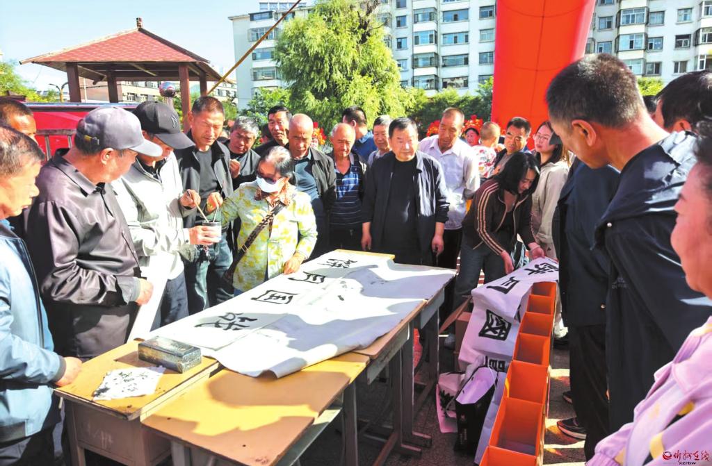 書法愛好者們揮毫潑墨,一幅幅飽含深情、寓意美好的作品躍然紙上,引得過往群眾駐足欣賞。該活動不僅豐富了群眾的精神文化生活,還營造出濃厚的節日文化氛圍。(歐麗霞攝)
