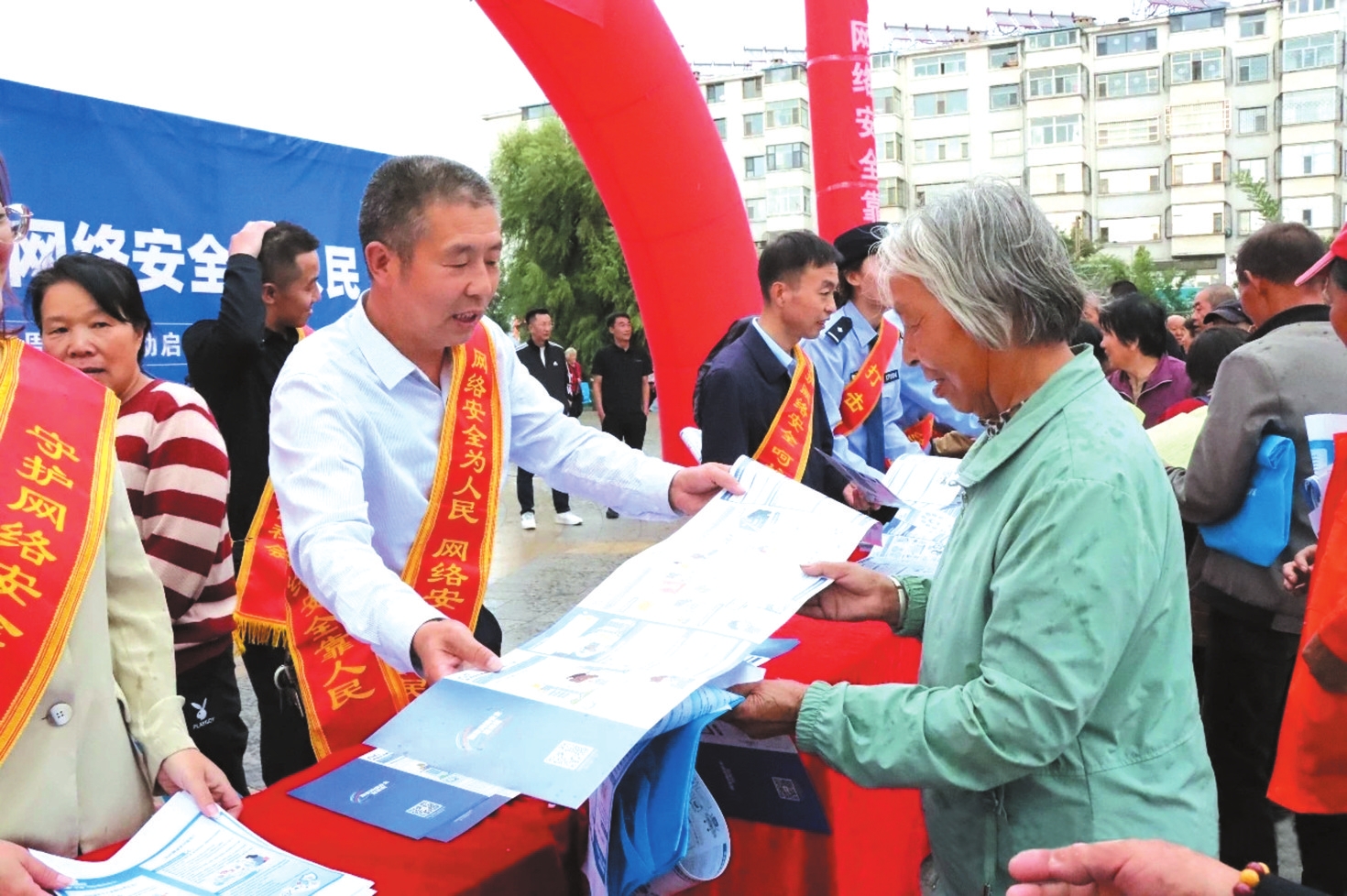 圖為工作人員正在發放網絡安全宣傳資料。