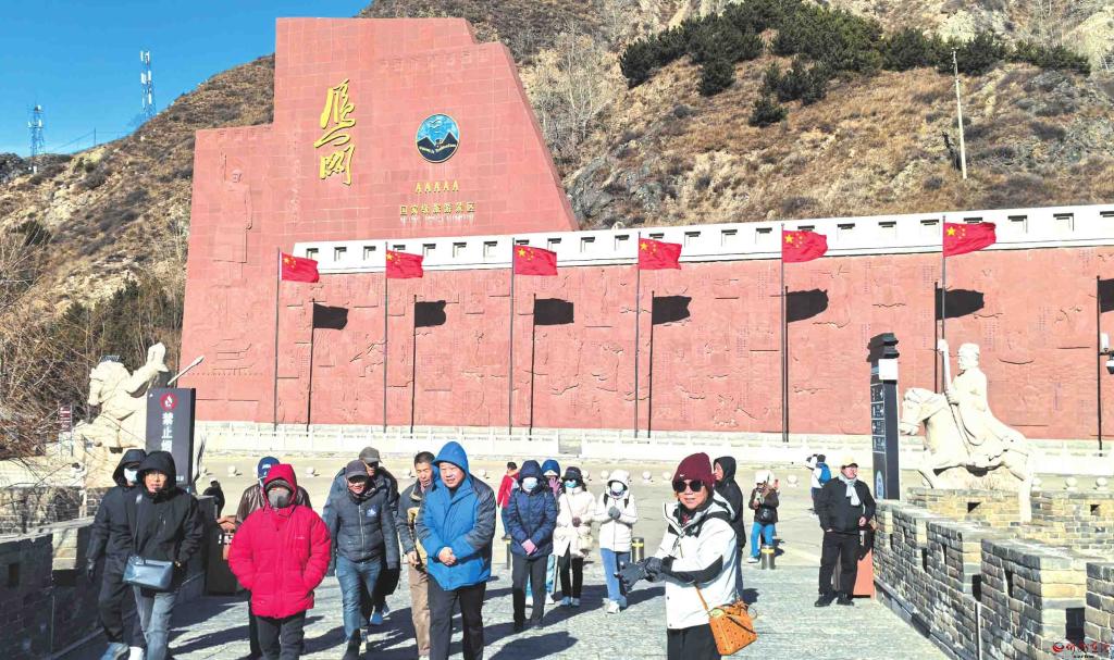 11月17日,雁門關景區雖然氣溫驟降,但擋不住游客前往旅游的熱情。來自全國各地的游客不懼嚴寒,游走在雁門關關隘兩翼,不時拍照打卡。(