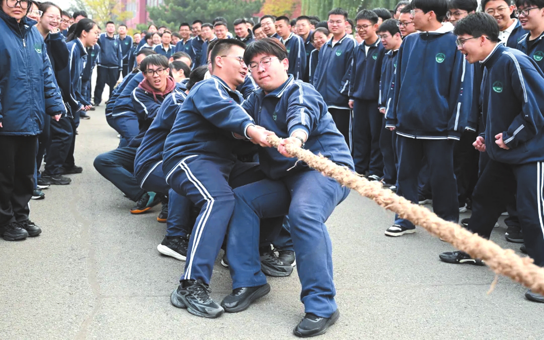近日,忻州實驗中學第22屆校園文化藝術體育節拔河比賽舉行。比賽哨聲一響,賽場瞬間沸騰。參賽隊員們緊握長繩,雙腳蹬地,身體后傾,每一個動作都凝聚著集體的力量與智慧。老師們化身為全情投入的啦啦隊長,揮動雙臂,聲嘶力竭地為隊員們指揮節奏;各班同學則自發組成陣容強大后援團,將現場氛圍一次次推向高潮。 (記者 馮偉倫攝)