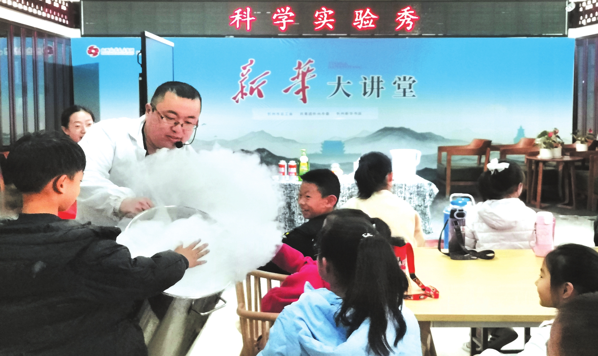 近日,在市圖書大廈“騰云駕霧”科學實驗秀上,小朋友興奮地觸摸了“白云”。由市總工會、共青團忻州市委主辦,忻州新華書店協辦,每周一次的“新華大講堂”深受小朋友歡迎。(本報記者宮清華攝)