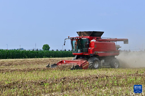 7月8日,收割機在作業,為后續播種大豆做準備。(新華社記者 吳青昊 攝)