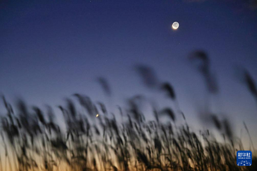 10月20日在黑龍江省齊齊哈爾市拍攝的啟明星伴月。(新華社發 王勇剛 攝)