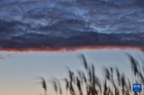 10月19日在黑龍江省同江市拍攝的啟明星伴月。(新華社發 劉萬平 攝)