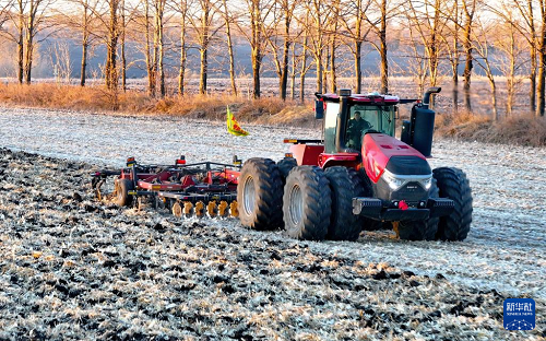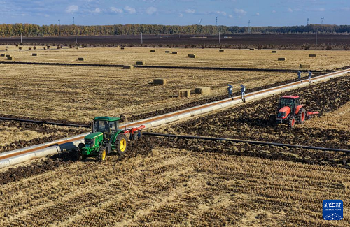 10月23日,農機在北大荒集團北安分公司龍鎮農場有限公司第一管理區進行整地作業(無人機照片)。(新華社發 錢泊羽 攝)
