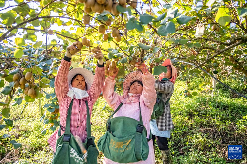 10月23日,農民在云南省文山壯族苗族自治州西疇縣國家石漠公園獼猴桃種植基地采摘獼猴桃。(新華社發 熊平祥 攝)