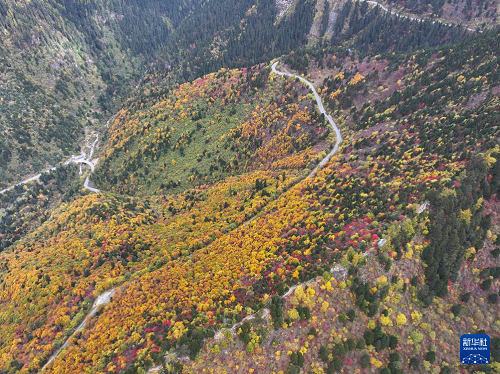 這是10月28日在林芝市巴宜區拍攝的色季拉山秋景(無人機照片)。(新華社記者 盧丹陽 攝)