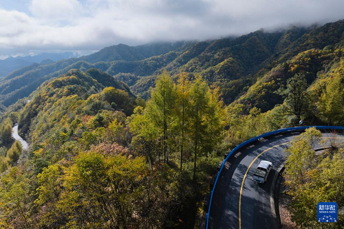 10月30日拍攝的鎮坪縣境內化龍山秋日景色(無人機照片)。(新華社記者 邵瑞 攝)