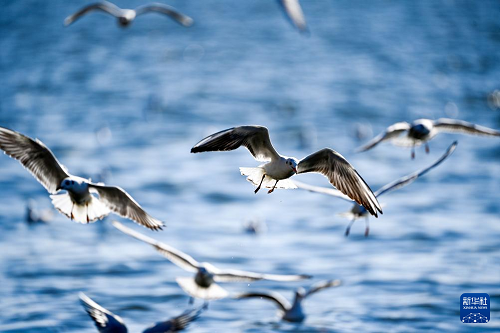 11月13日,海鷗在海河岸邊飛翔。(新華社記者 趙子碩 攝)