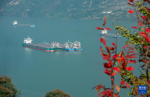 11月16日,船舶行駛在湖北省宜昌市秭歸縣西陵峽水域(無人機(jī)照片)。(新華社發(fā) 王輝富 攝)
