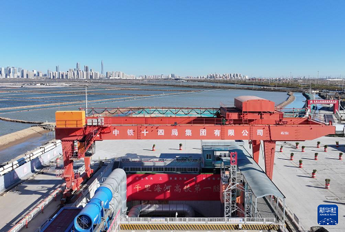 11月27日拍攝的津濰高鐵津沽海河隧道盾構工區。(新華社記者 李然 攝)