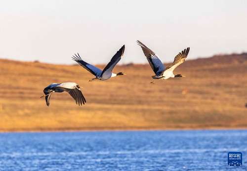 黑頸鶴飛抵云南大山包越冬