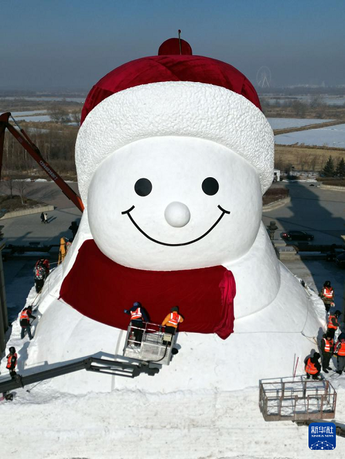 12月14日,正在建設中的哈爾濱群力音樂公園網紅大雪人頭部已完成,露出憨態可掬的笑容。今年回歸的大雪人將在保留紅帽子、紅圍脖、紅色愛心紐扣“經典皮膚”的基礎上,再次升級。設計身高19米、長14米、寬11米,比往年“長高”1米,總用雪量超過3000立方米,比往年增加1200立方米,達到歷年之最。