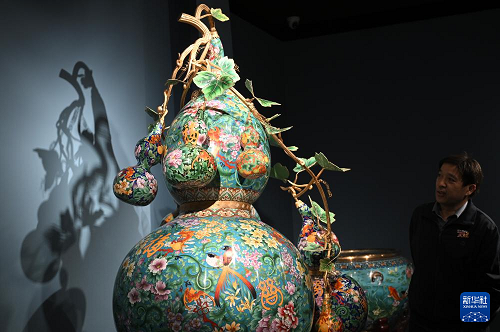 12月15日,觀眾參觀展出的景泰藍作品《福祿萬代》。(新華社記者 金良快 攝)