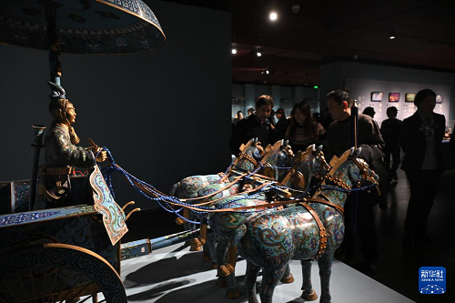 12月15日,觀眾參觀展出的景泰藍作品《兵馬戰車》。(新華社記者 金良快 攝)