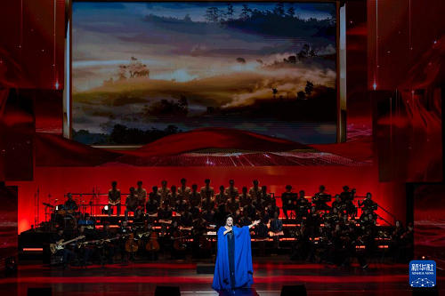 12月16日,在北京二七劇場(chǎng)舉辦的“中國(guó)夢(mèng)·勞動(dòng)美”2026新年音樂(lè)會(huì)上,鄭詠演唱《我愛(ài)你,中國(guó)》。(新華社記者 才揚(yáng) 攝)