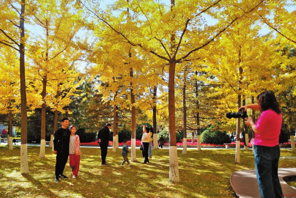 葉落知秋,霜落知寒,但屬于銀杏的時節才剛剛開始。忻州城區人民公園絢爛金黃的銀杏把秋日氣息渲染到了極致,使原本蕭瑟的秋季充滿融融暖意。滿樹的金黃,一片片、一簇簇,層疊排開、錯落有致,一陣微風吹過,扇形葉子飄灑而下,如漫天飛舞的金色蝴蝶,在空中翻轉,落成一地金黃,吸引無數游人打卡拍照、流連忘返。(本報記者 李濤 攝)